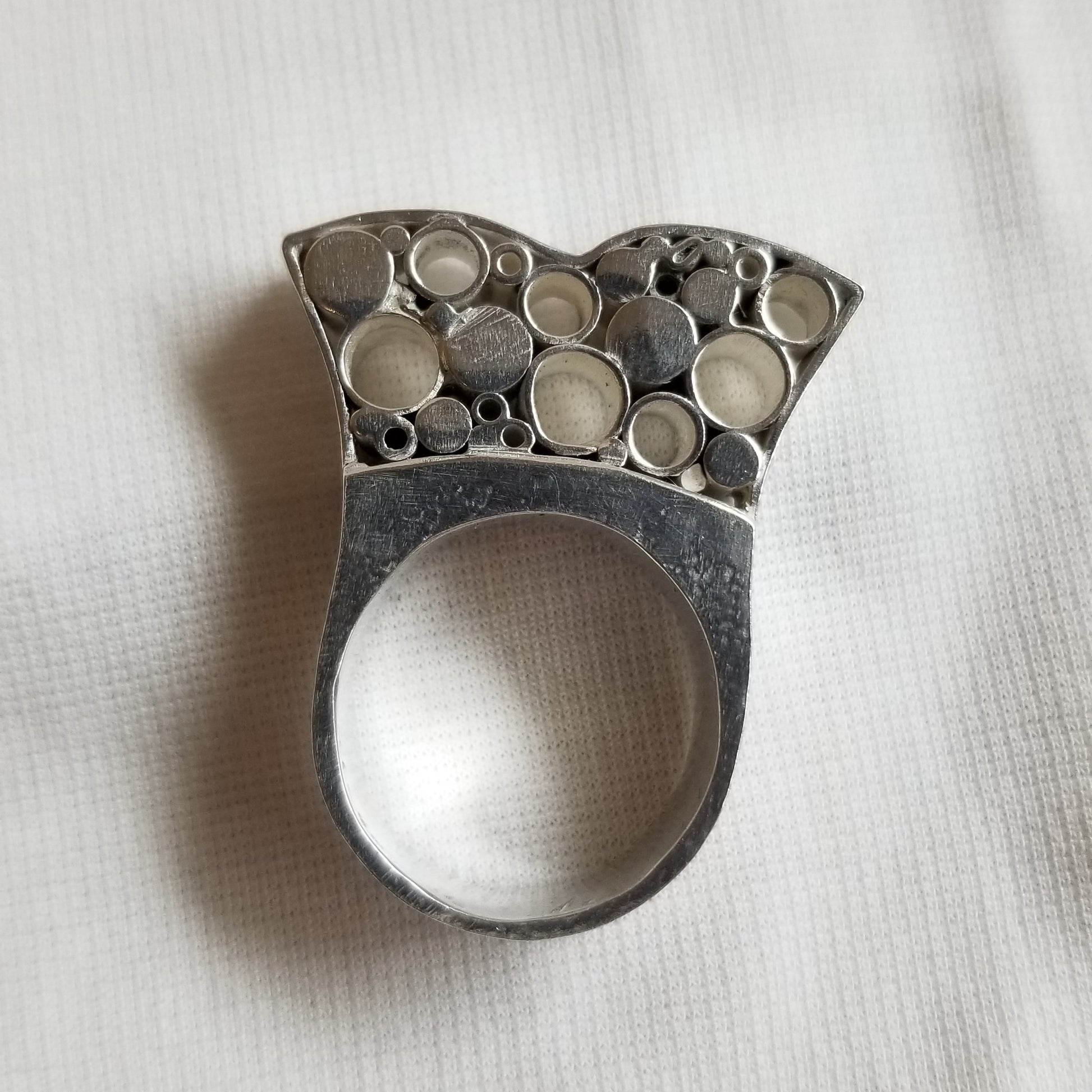 Sterling silver statement ring with solid and hollow circles. Size 7 1/4