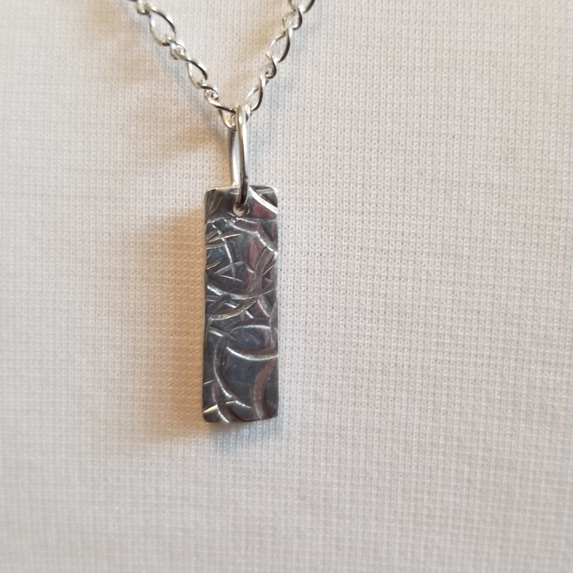 Sterling silver 3 tier necklace with textured silver and kyanite crystal pendants. Chain lengths are 18", 21.5" and 26.5"